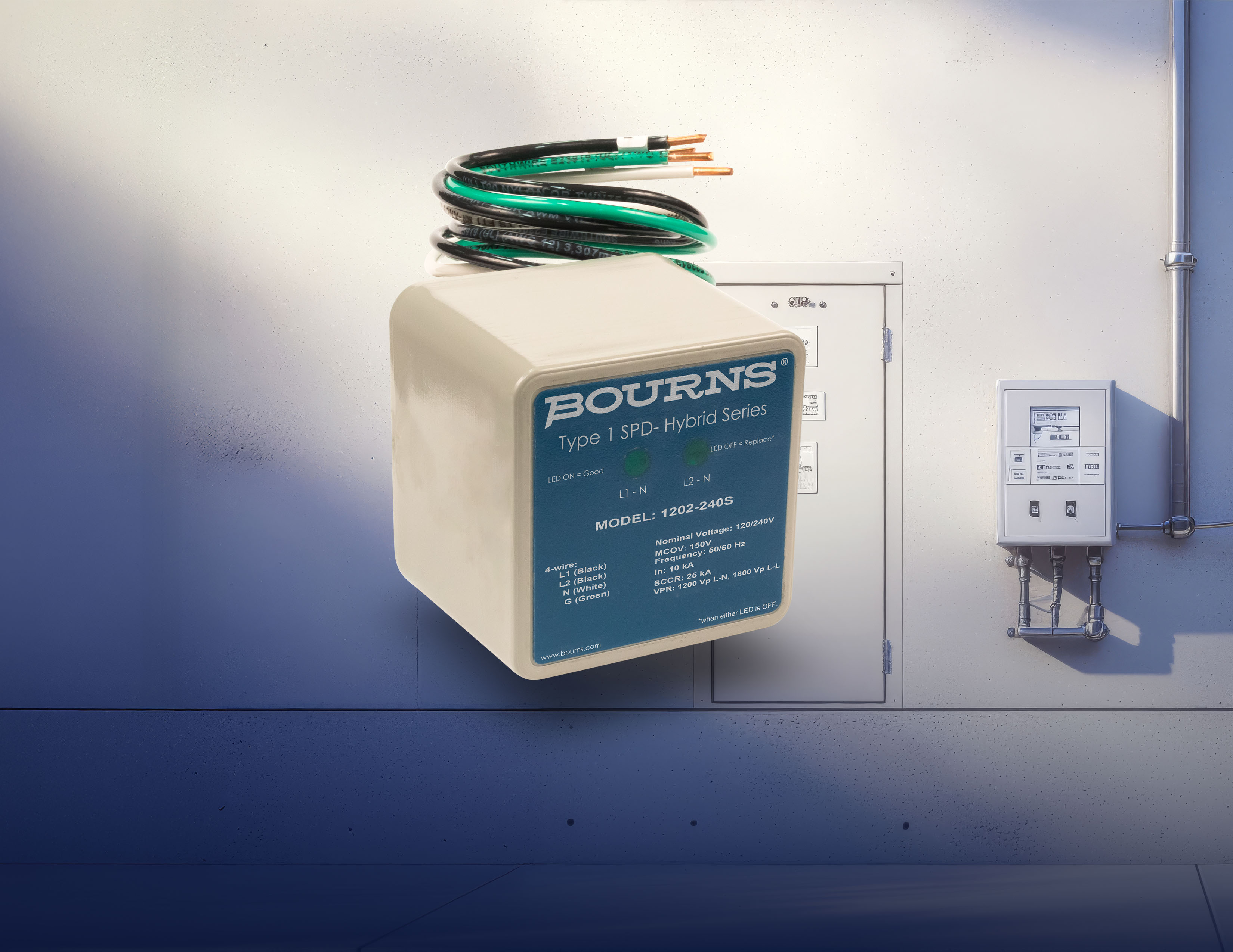 RIVERSIDE, Calif., December 8, 2025 - Bourns, Inc., a leading manufacturer and supplier of electronic components for power, protection, and sensing solutions, today introduced its 1202-P Series Surge Protective Devices (SPDs). These hardwired Type 1 SPDs combine high surge current capability with a built-in thermally-protected MOV mechanism that helps ensure safe operation even under extreme overvoltage conditions. The Bourns® 1202-P Series provides exceptional (20 kA) nominal discharge current and industry-leading (50 kA) discharge current that meets the broader and more stringent protection now required in a growing list of AC infrastructure applications that include service entrance, branch and OEM panels.