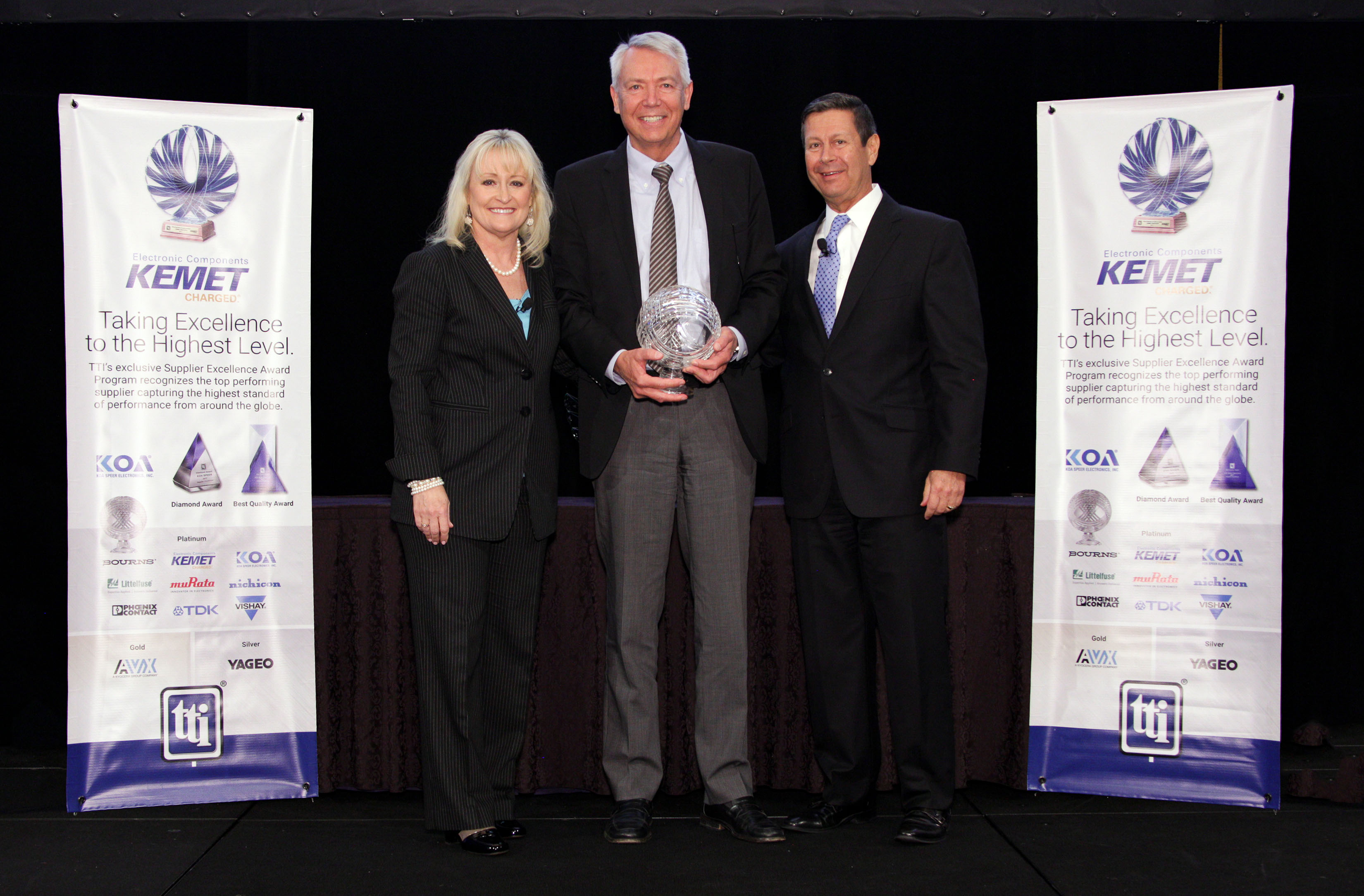Bourns' Asia and EMEA operations were separately awarded TTI's Supplier Excellence Award at the top Platinum level. In addition, and for the second consecutive year, Bourns Asia received TTI's Best Quality Award for the supplier who scored highest in each of the quality categories. Also noteworthy is that in the Americas, Bourns has earned the TTI Supplier Excellence Award for 15 years in a row. The awards were given at the TTI Supplier Executive Breakfast meeting held during the Electronic Distribution Show (EDS) in Las Vegas, Nevada, on Wednesday, May 16, 2018.