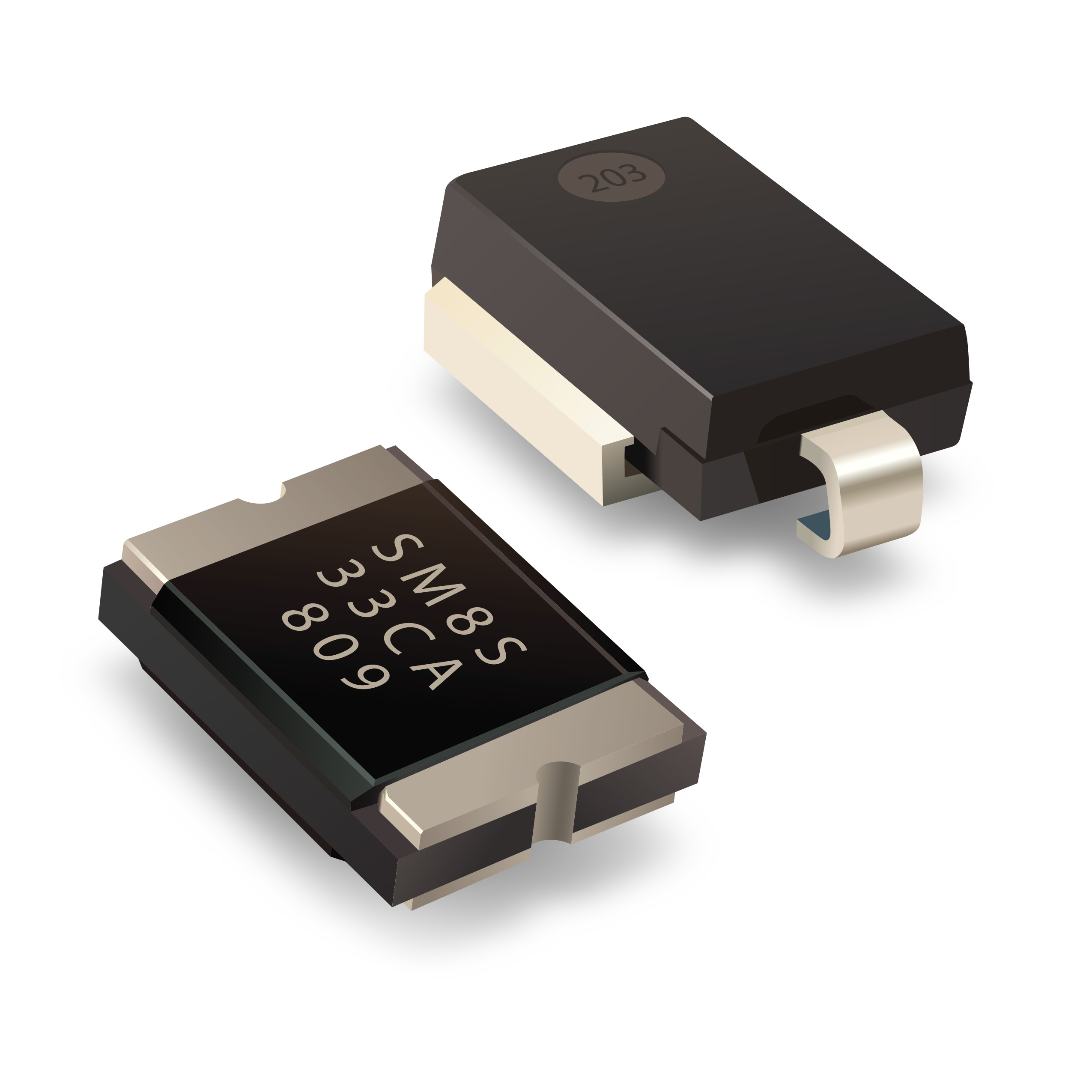 RIVERSIDE, Calif., March 18, 2019 - Bourns, Inc., a leading manufacturer and supplier of electronic components, today announced two new families of AEC-Q101-compliant TVS diode components. Designated Models SM8S-Q and SM8SF-Q, these families are comprised of both unidirectional and bidirectional TVS diodes. They are designed to protect against voltage transients, ESD and EFT surges in DC power supplies and on data lines. Because the new TVS diodes are AEC-Q101-compliant, they are an optimal protection solution for applications that need to meet high reliability requirements such as in equipment that operates in high power, high temperature or in harsh environmental conditions.