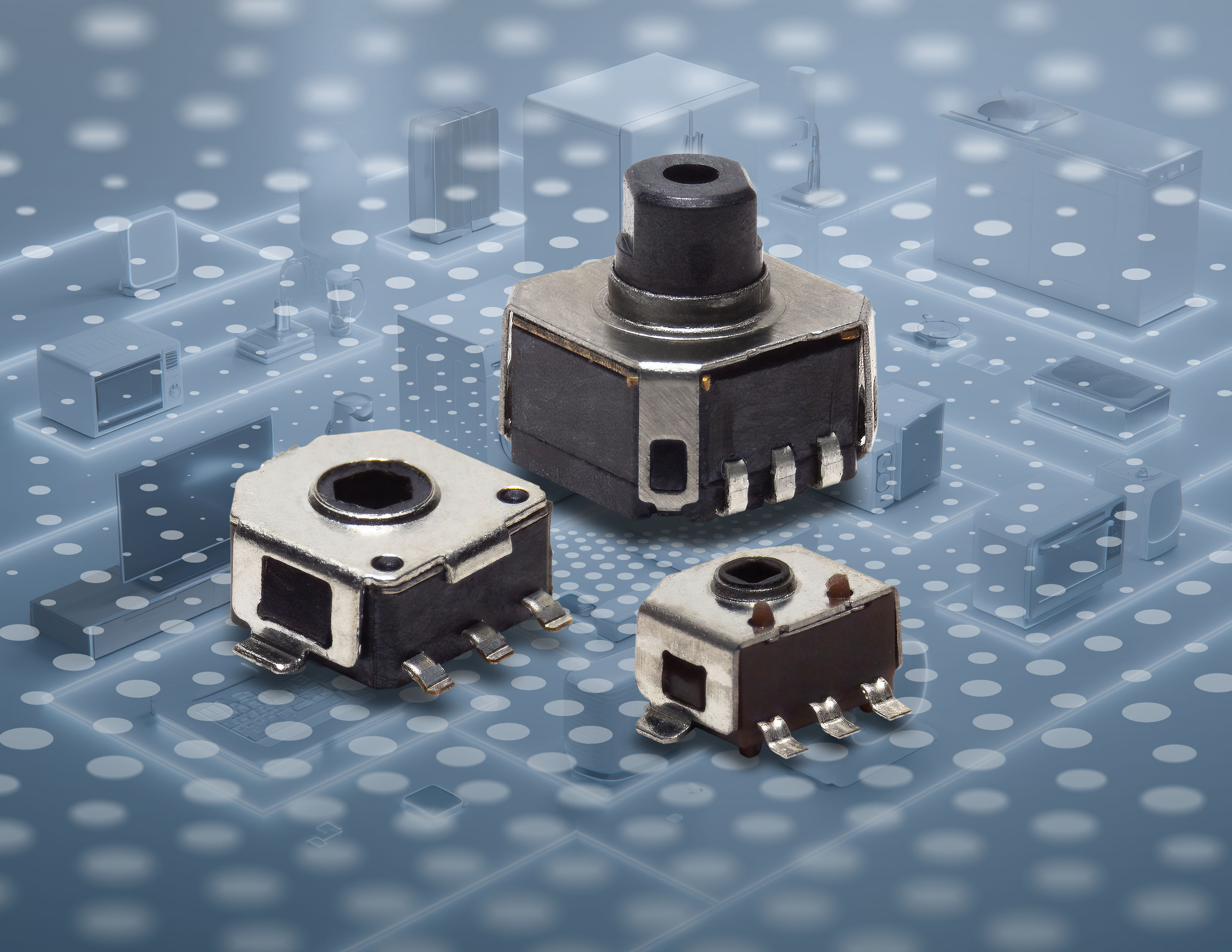 The new micro encoders have an impressive IP40 rating for dust, feature a 30k, 50k and 20k rotational cycle rating respectively and a -20 °C to +70 °C operating temperature range in a rugged, compact surface mount design. These micro encoders also offer a 2-bit quadrature code output and 360-degree continuous mechanical angle. These features and capabilities make these micro encoders well-suited for space-constrained consumer electronics designs.