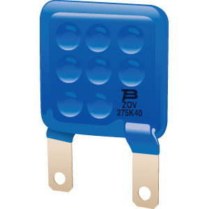 ZOV ZOV High energy square shaped zov_part device_symbol_through_hole Epoxy coated with rigid terminals and metalized blocks 23, 25, 32, 40, 60 Yes 60 – 680 V 85 – 895 V 18 – 80 kA <25 ns –40 to +85 UL 1449