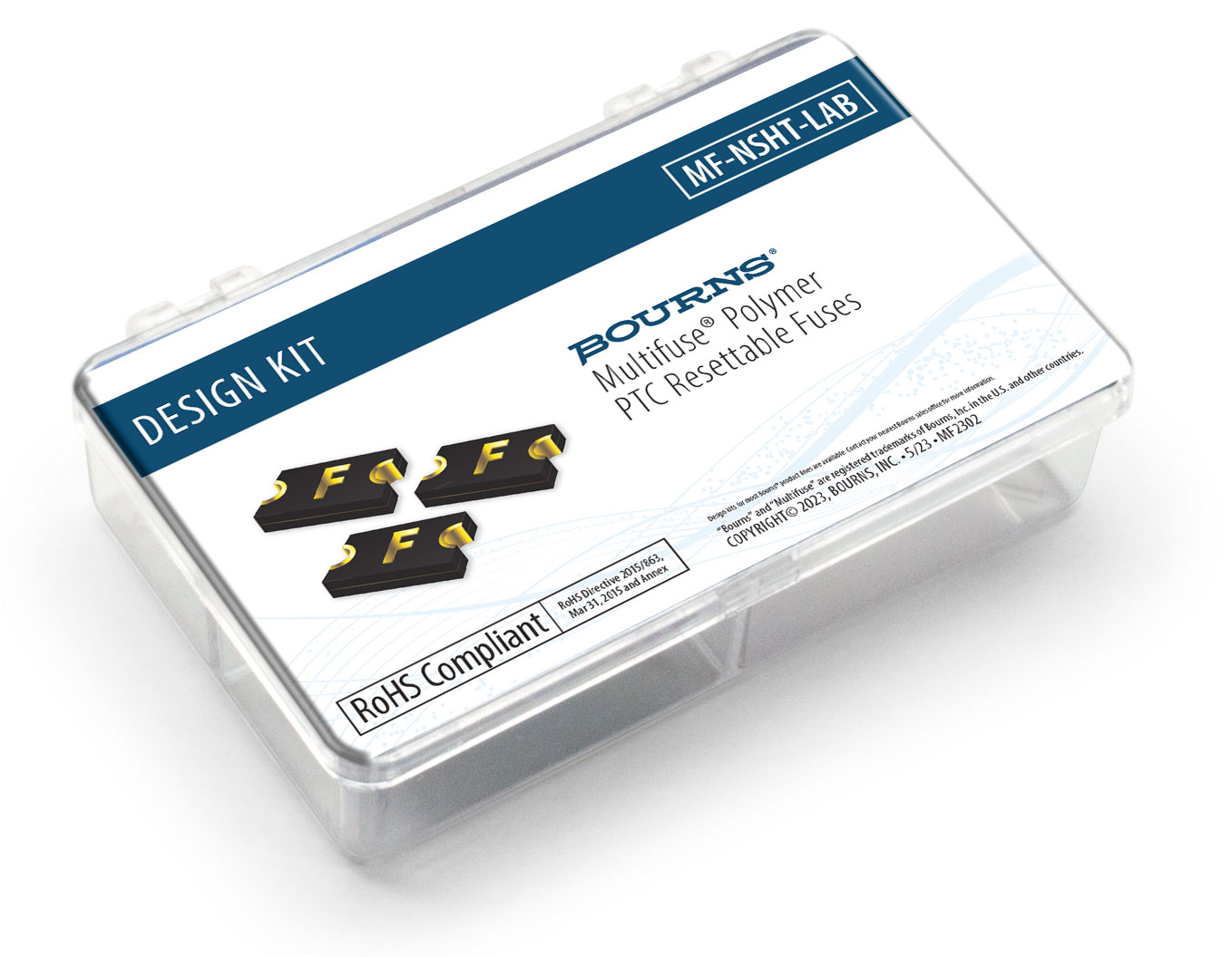 Bourns has a wide range of sample kits comprising of specific Multifuse® PPTC resettable fuse products. These design kits are made to help engineers easily select the best product for their application. They also come available for specific applications and markets. In order to obtain a Bourns® Design Kit please contact your local Bourns sales office or authorized Bourns distributor.